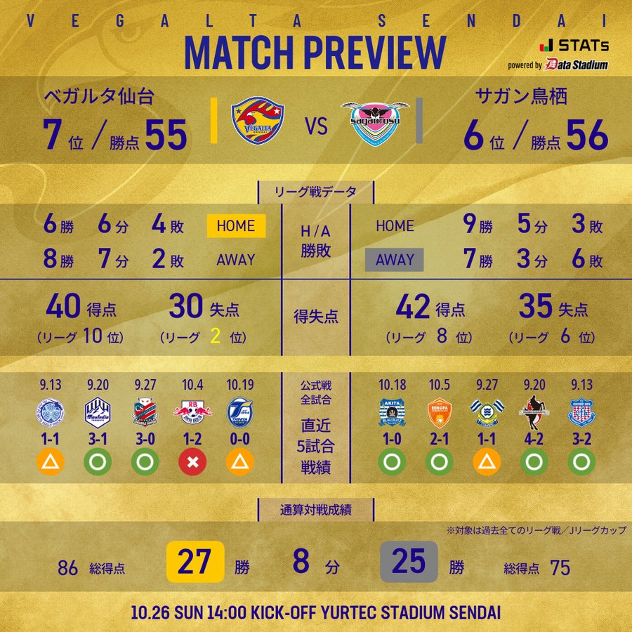 Hiện tại trên bảng xếp hạng giải hạng hai chuyên nghiệp Nhật Bản, Sendai Tanabata hiện đứng thứ 7 trên BXH với 14 trận thắng, 13 trận hòa và 6 trận thua. Họ hiện đang cách khu vực play-off và vị trí chạy đua 1 điểm. Chỉ khi chiến thắng trận đấu này, họ mới có cơ hội lật ngược tình thế một lần nữa. Tuy nhiên, tin vui là cuộc cạnh tranh suất dự play-off Giải chuyên nghiệp Nhật Bản B mùa này đang rất căng thẳng. Chiba Ichihara, người đứng thứ ba, chỉ có 58 điểm, tình thế vẫn còn khó hiểu. Trong 16 trận sân nhà ở giải VĐQG mùa này, Sendai Tanabata có được 6 trận thắng, 6 trận hòa và 4 trận thua, phong độ ở mức chấp nhận được và họ chưa để thủng lưới nhiều hơn một bàn mỗi trận.