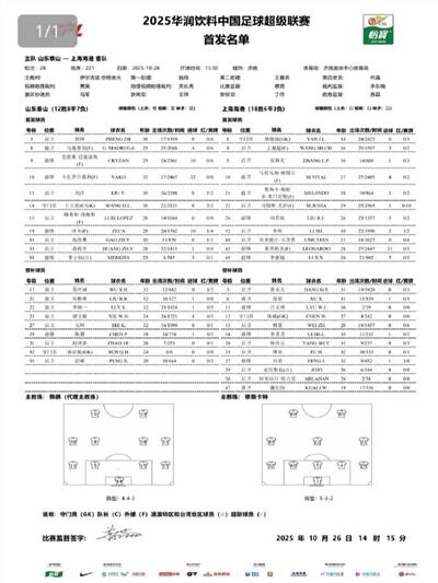 Đội hình xuất phát của Sơn Đông Taishan: 14-Wang Dalei, 5-Zheng Zheng, 15-Luis Lopez (F), 11-Liu Yang, 33-Gao Zhunyi, 35-Huang Zhengyu, 8-Madruga (F), 19-Zeka (F), 38-Li Xiaoheng, 10-Kazaishvili (F), 9-Kresan (F)