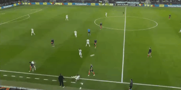 Đội hình xuất phát của Ferencvaros: 90-Dibuts, 27-Hisse, 28-Remax, 22-Sazlay, 5-Keita, 16-Zakaria Sen, 36-Kanikovsky, 25-Maklay Keith, 20-Kadu, 8-Pesic, 11-Dell