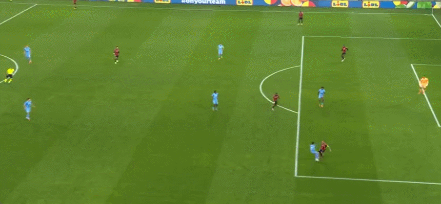 17' Boga đưa bóng ra ngoài khu vực ba giây và sút từ ngoài. Linhardt cản phá cú sút và chặn bóng