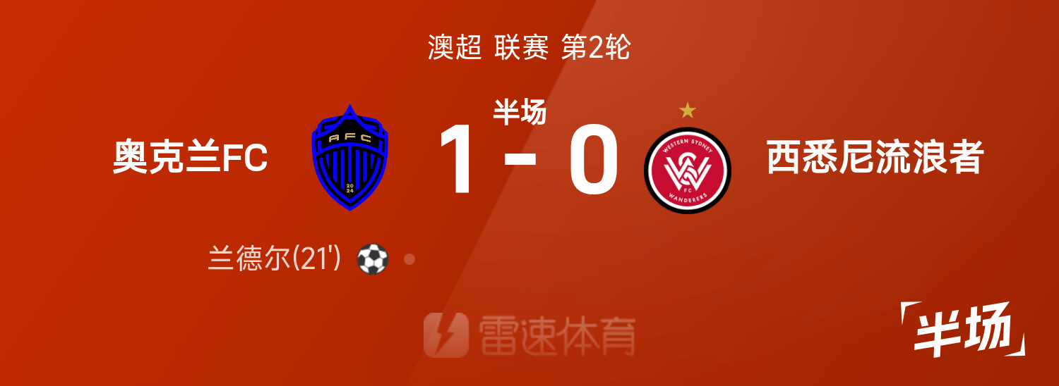 Hiệp 1 Australian Super League: Randall ghi bàn từ vòng ngoài, Auckland tạm dẫn Western Sydney Wanderers 1-0