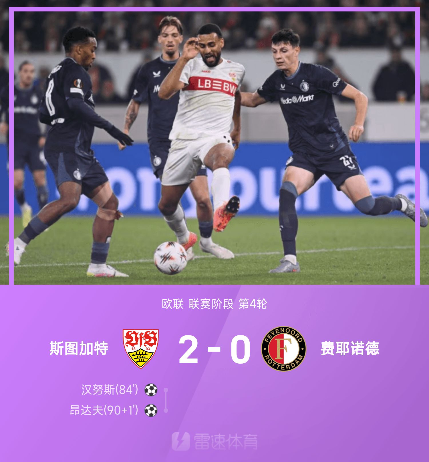 Báo cáo Europa League: Hannus ghi bàn, Ondave ghi bàn, Stuttgart 2-0 Feyenoord