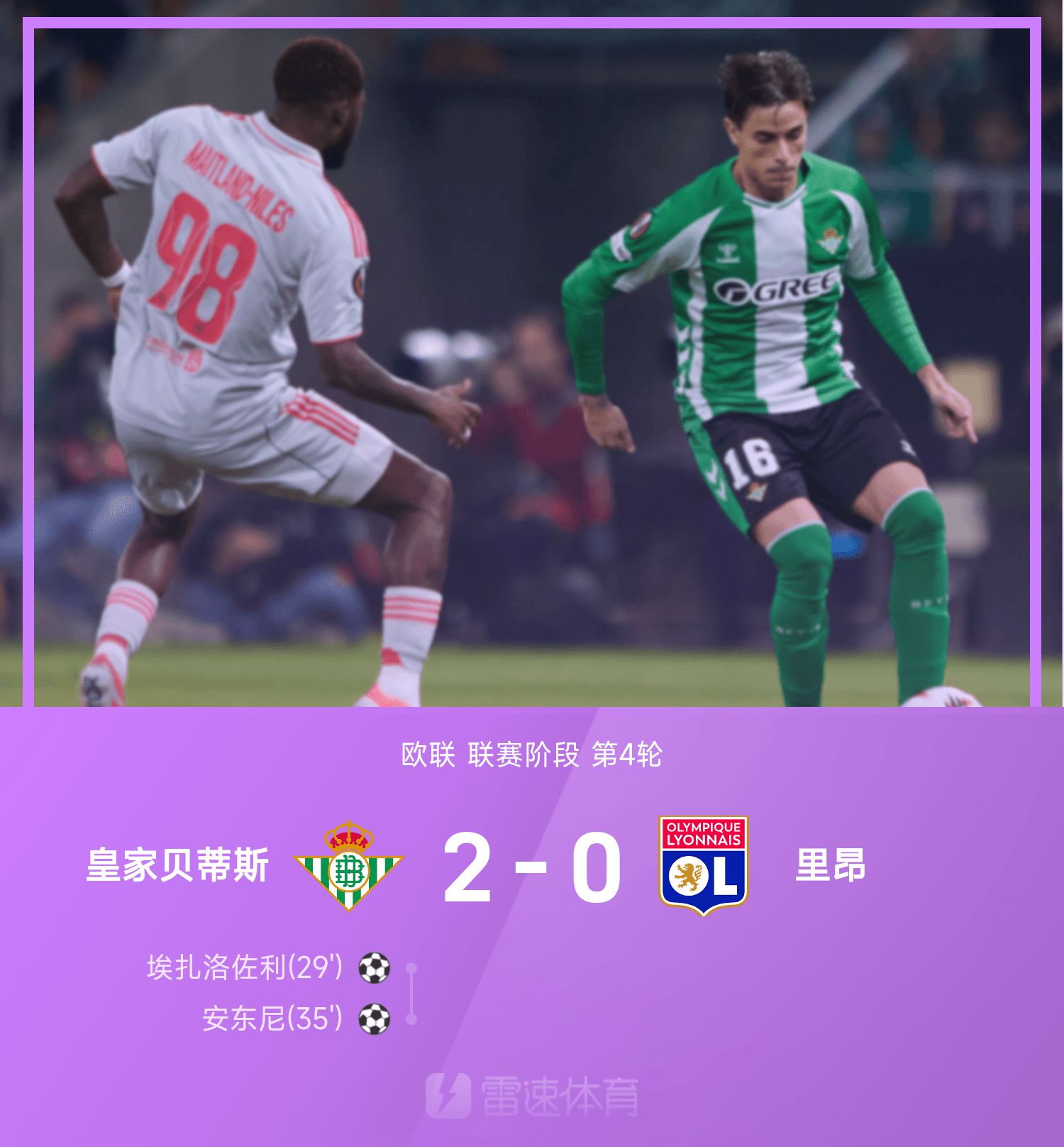 Tường thuật trận Europa League: Anthony ghi bàn liên tiếp, Real Betis 2-0 Lyon
