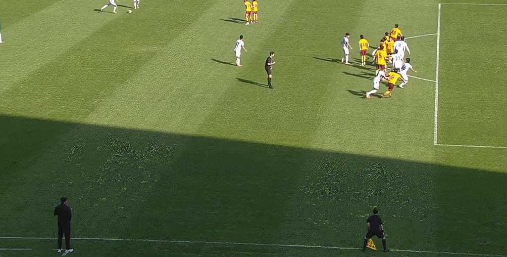18' Motta đột phá vào khu vực ba giây dọc bên cánh trái để nhận đường chuyền và thực hiện cú vô lê. Thủ môn Jin Gengmin cứu bóng