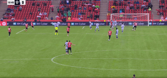 44' Moranes thực hiện cú vô lê cực mạnh từ khu vực ba giây và bị thủ môn cản phá