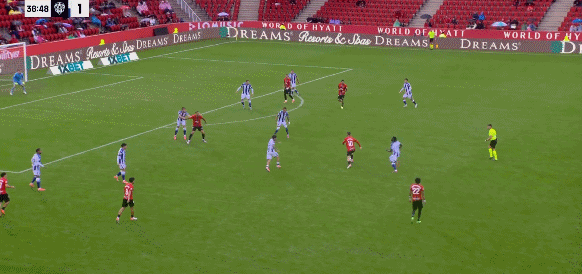 Đội hình xuất phát của Real Mallorca: 1-Roman, 24-Vargent, 22-Mojica, 23-Maffeo, 21-Railo, 10-Dardel, 8-Moranes, 12-Costa, 18 -Joseph, 17-Vigili, 7-Muriqui