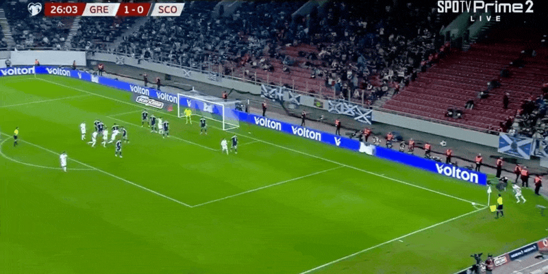 Hiệp một vòng loại châu Âu thế giới: Baxtas ghi bàn, Pavlidis nghỉ thi đấu vì chấn thương, Hy Lạp 1-0 Scotland