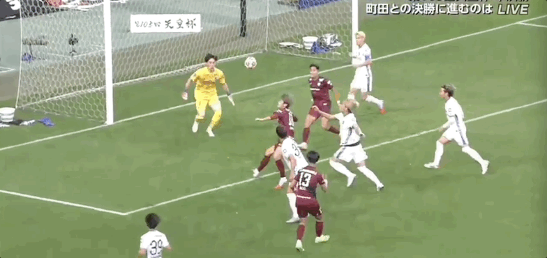 40' Cú đánh của Jermaine Enryo bàn thua trước khu vực ba giây và thủ môn Kobe tịch thu bóng