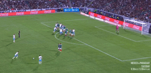24' Jimenez đánh đầu từ phía sau, Lozano thực hiện cú sút nửa chậm và bỏ lỡ cơ hội ghi bàn trống