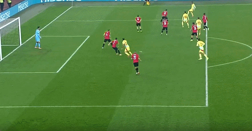 86' Hậu vệ người Tây Ban Nha cản phá cú sút, vượt qua vòng cấm, suýt phản lưới nhà, bóng đập cột dọc và bật ra out