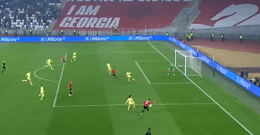 79' Titaishvili tung cú sút từ ngoài khu vực 3 giây, bóng vọt qua xà ngang và bay ra ngoài vạch cuối sân
