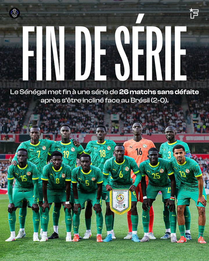 Chuỗi 26 trận bất bại của Senegal đã bị Brazil chấm dứt với trận thua gần nhất vào tháng 9/2023.