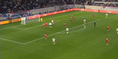 8' Wirtz nhận bóng trong vòng 3 giây rồi bất ngờ tung mũi tên lạnh lùng vào góc xa, nhưng bóng đi quá đúng và bị thủ môn cản phá