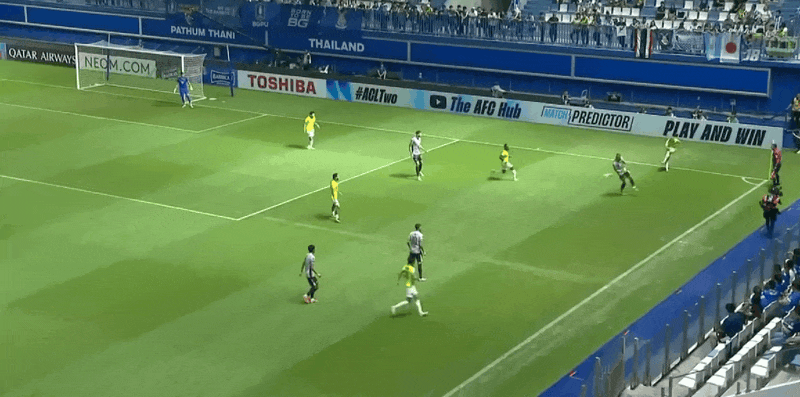 26' Songkrasin lốp bóng ghi bàn từ khu vực ba giây, nhưng không kiểm tra được thủ môn đối phương