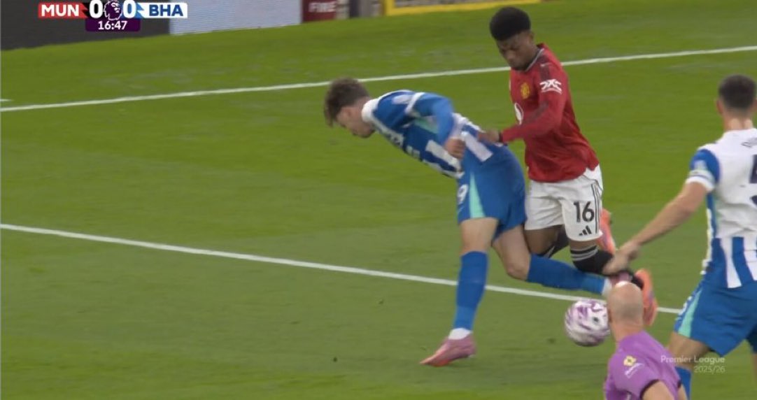 6686 Thể thao, ngày 26 tháng 10, Vòng 9 Ngoại hạng Anh, Manchester United tạm dẫn Brighton 2-0. Phút 15 của trận đấu, Amad đột nhập vào khu vực ba giây và bị De Cuyeppe hạ gục. Trọng tài không đưa ra phán quyết.