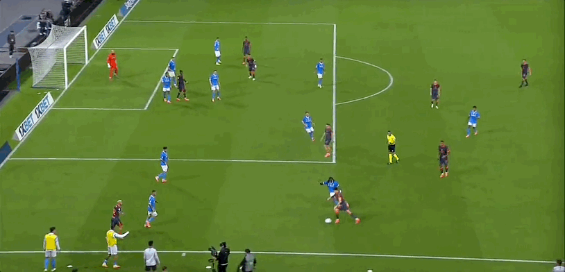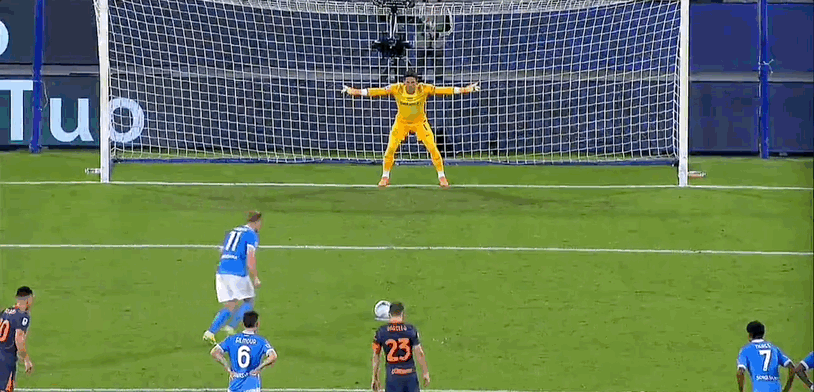 15’ Lautaro có cơ hội tuyệt vời ở khu vực ba giây và cú sút của anh ấy đã bị thủ môn của Naples cản phá