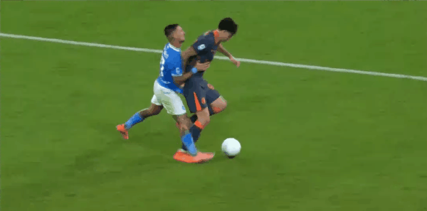 Biển cảnh báo 45+6' - Vi phạm Gilmour (Naples)