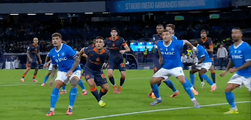 15’ Lautaro có một cơ hội tuyệt vời trong khu vực ba giây và cú sút của anh ấy đã bị thủ môn Naples cản phá
