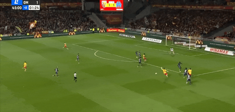 90+2' Sangare một mình đối mặt với thủ môn và bị truy cản, Lens bỏ lỡ cơ hội ấn định chiến thắng trước