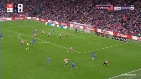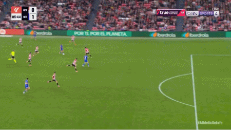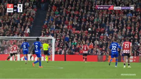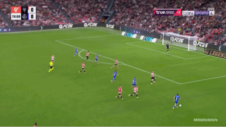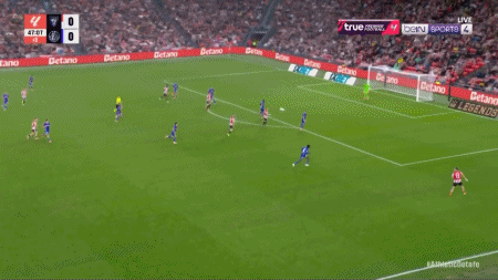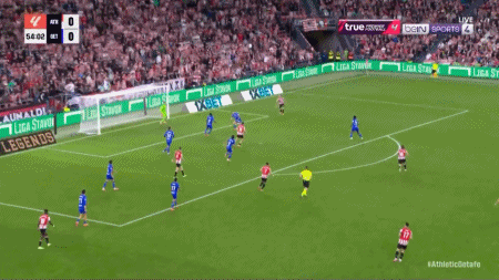 54' Guruzeta đánh đầu đưa bóng về phía khung thành khu vực ba giây, nhưng bóng đã bị thủ môn chặn lại