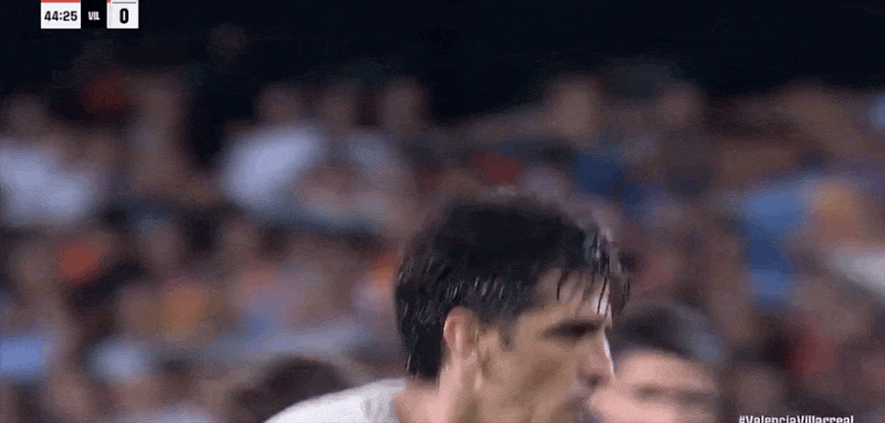 29’ Pepelu thực hiện quả đá phạt trực tiếp trước khu vực 3 giây, bóng bay về phía khán đài