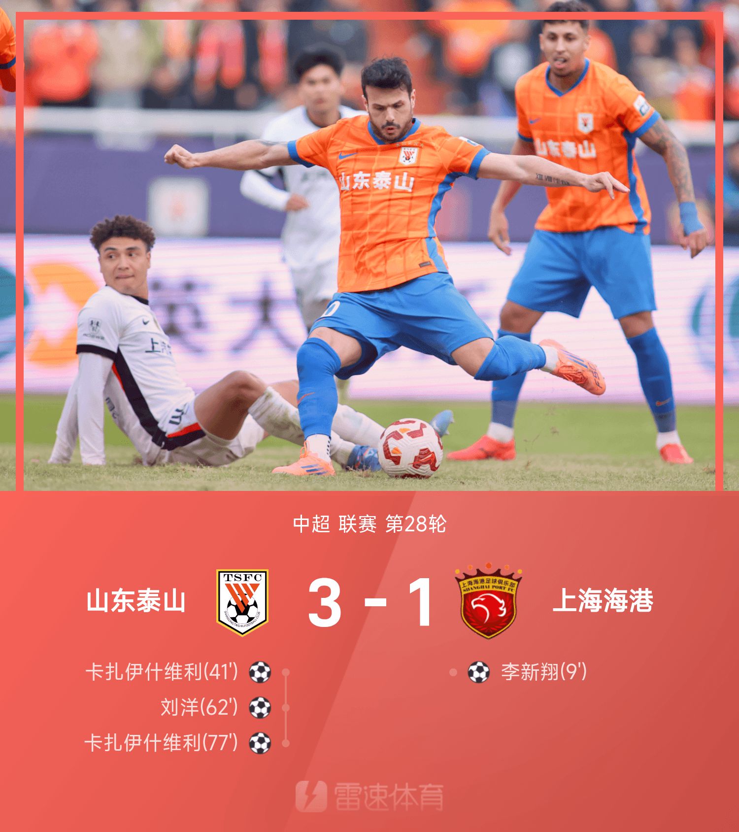 Báo cáo Super League Trung Quốc: Kaza lập cú đúp, Leonardo nghỉ chấn thương, Taishan ngược dòng Haigang 3-1