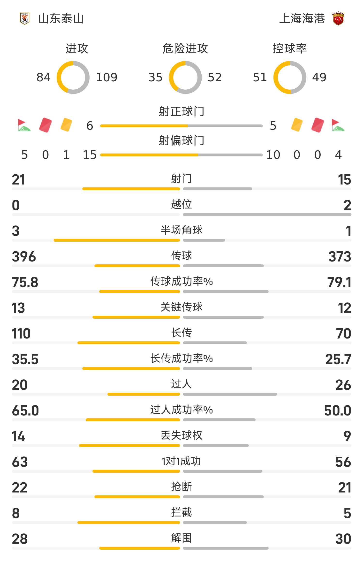 Đội hình xuất phát của Sơn Đông Taishan: 14-Wang Dalei, 5-Zheng Zheng (46'22-Li Yuanyi), 33-Micro Wings, 11-Liu Yang (84'17-Wu Xinghan), 55-Peng Xiao, 35-Huang Zhengyu, 8-Madruga, 10-Ka Zaishvili, 9-Klesan, 19-Zeka, 38-Li Xiaoheng (46'23-Xie Weneng)