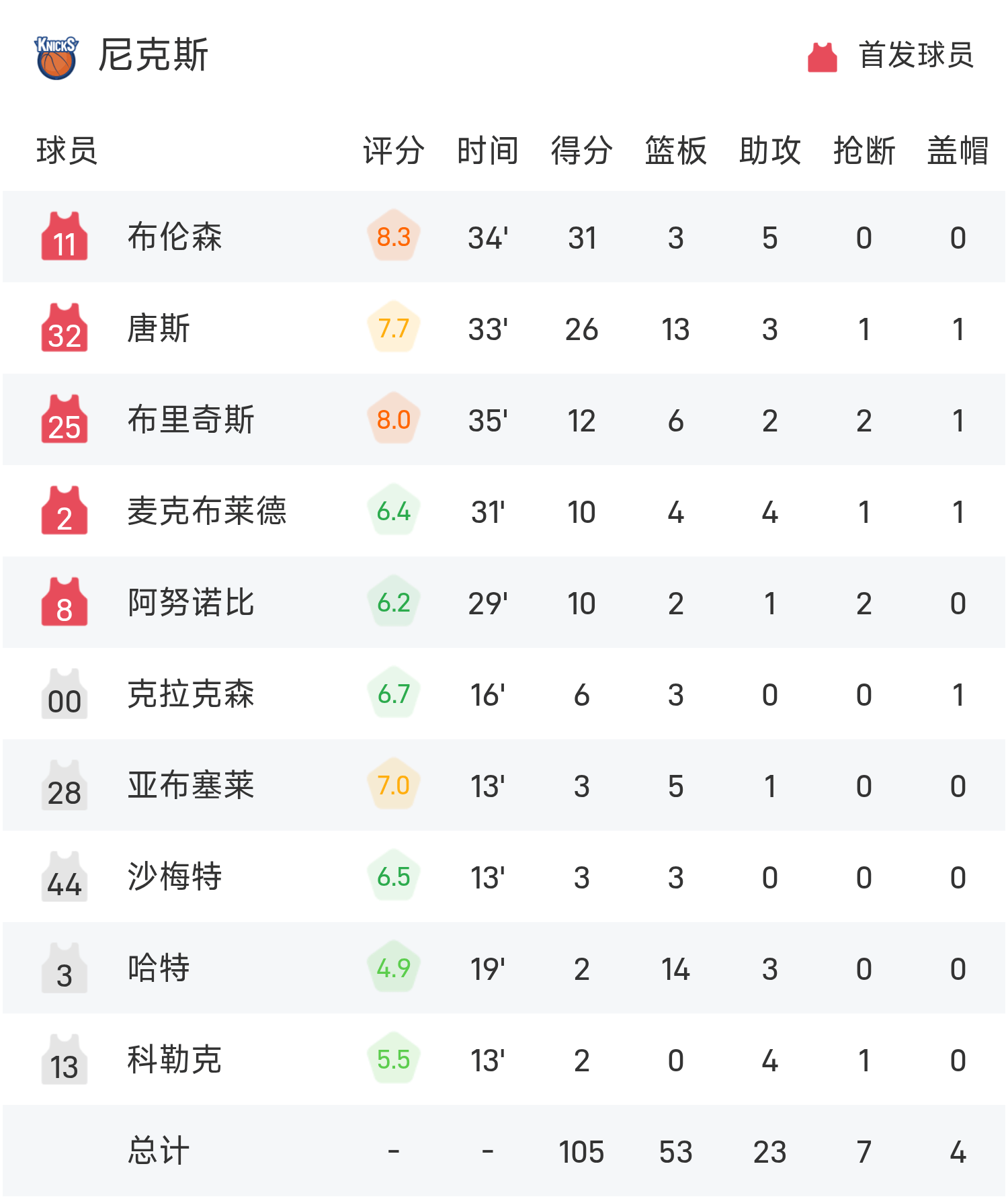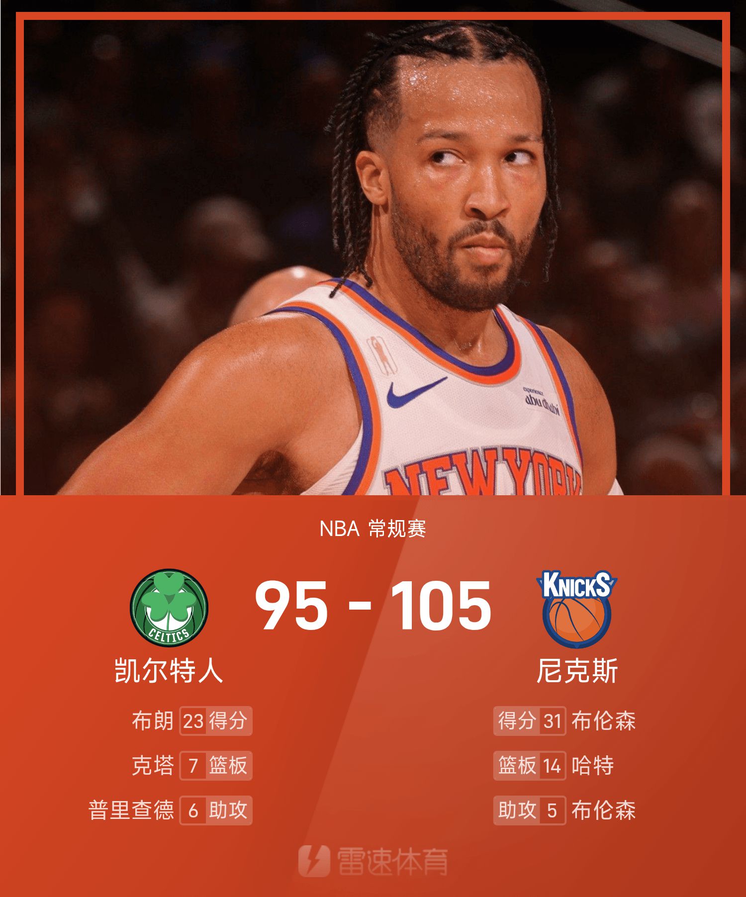 Báo cáo trận đấu NBA: Brunson 31 điểm, Thị trấn 26 + 13, Knicks 105-95 Celtics