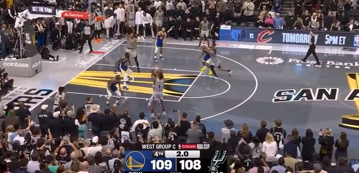 Khi hiệp 4 còn 6,4 giây, Curry thực hiện hai quả ném phạt trái luật để giúp Warriors lật ngược thế cờ 1 điểm.