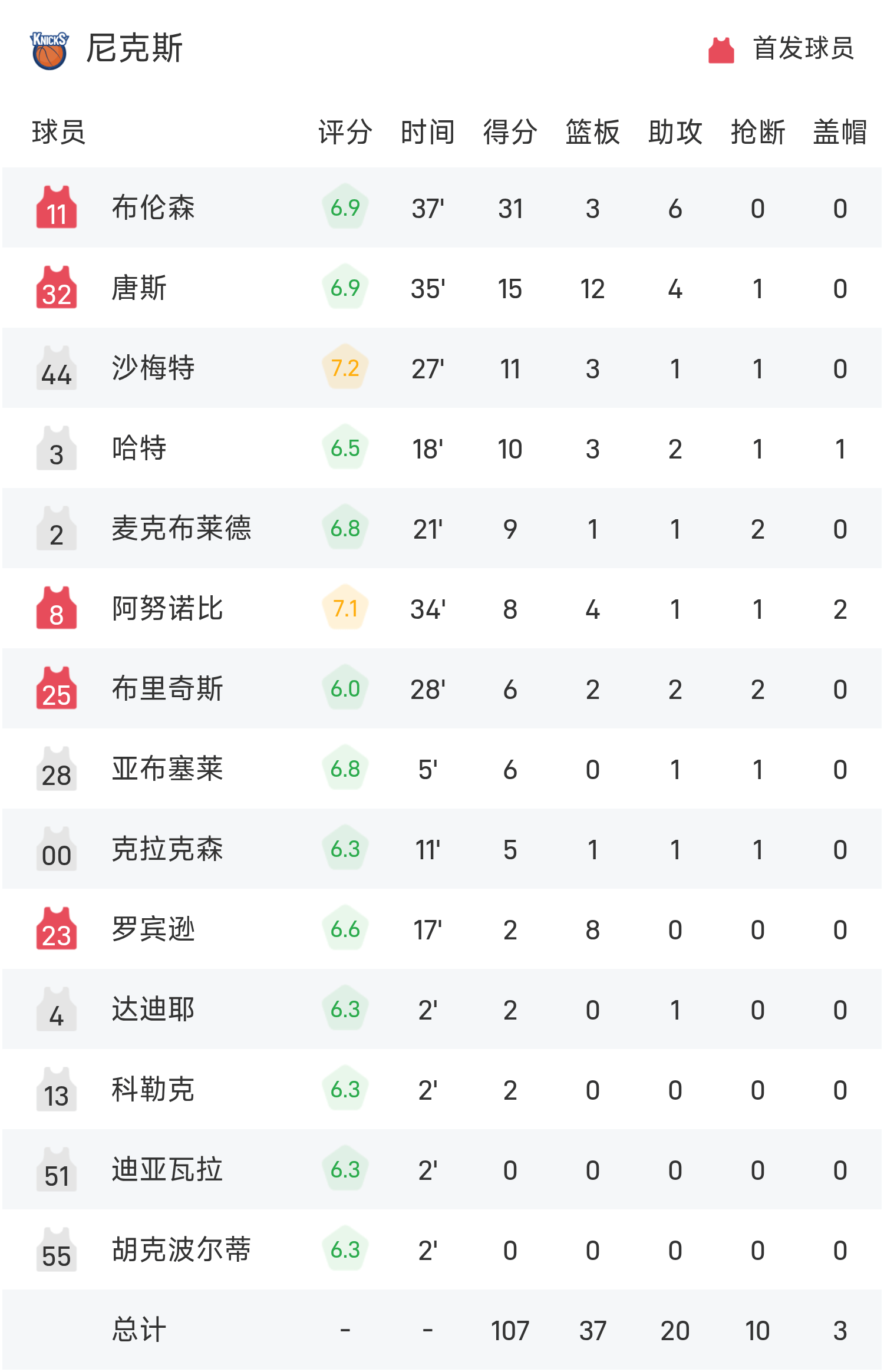 Wagner ghi 28 điểm, 9 rebound và 4 kiến tạo để dẫn dắt đội giành chiến thắng, trong khi Brunson ghi được 31 điểm, 3 rebound và 6 kiến tạo, cao nhất trận.