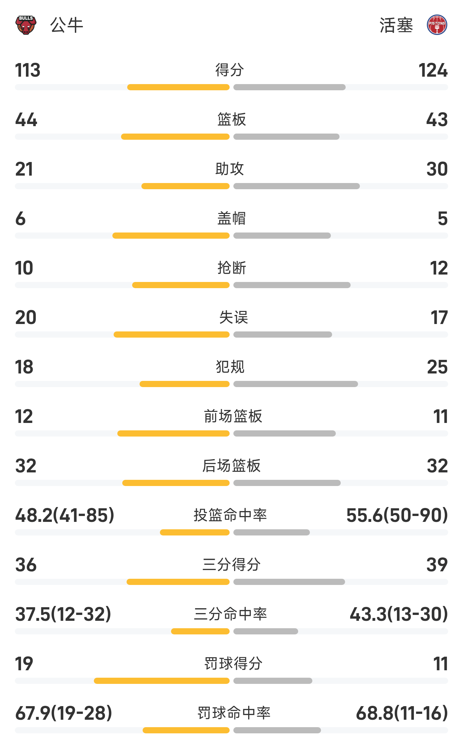 Cuối trận, Pistons đánh bại Bulls với tỷ số 124-113.