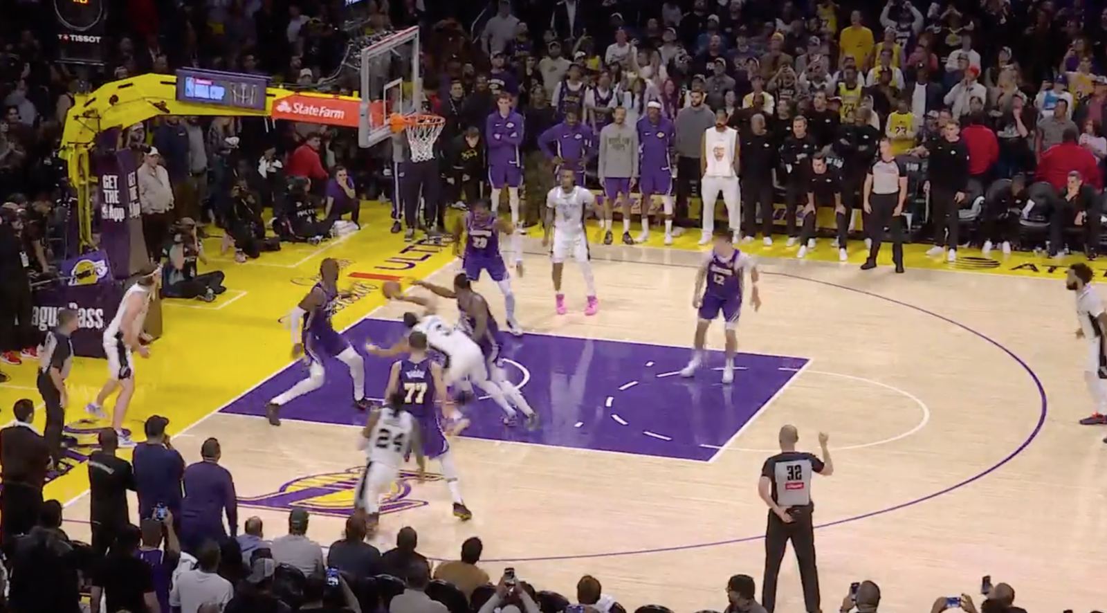 Trong 0,4 giây cuối cùng, trước khi bóng đi ra ngoài biên, Keldon Johnson là người cuối cùng chạm bóng nhưng trọng tài đã gọi Smart và bóng đi ra ngoài biên, bóng được trao cho Spurs. Đây là một phán quyết không chính xác và lẽ ra quả bóng phải được trao cho Lakers.