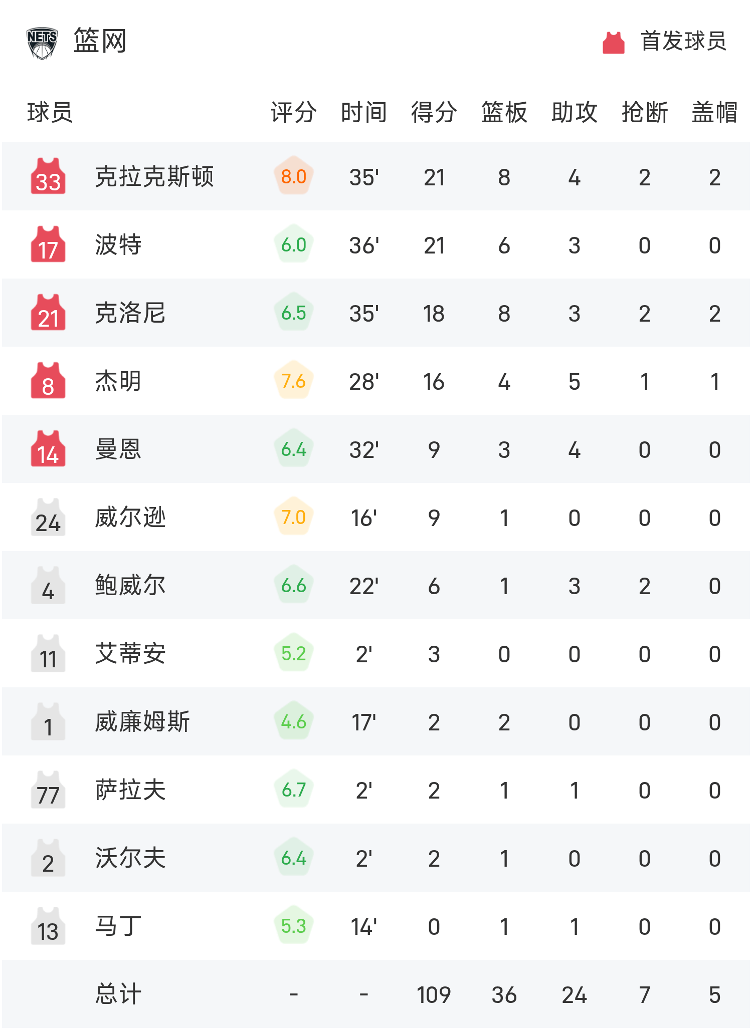 Cuối trận, Nets thua Raptors với tỷ số 109-119.