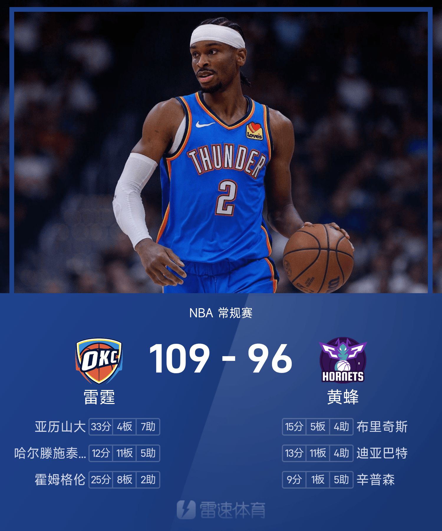 Alexander ghi được 33 điểm, còn Thunder đạt thành tích ấn tượng với 13 trận thắng và 1 trận thua hồi đầu mùa.