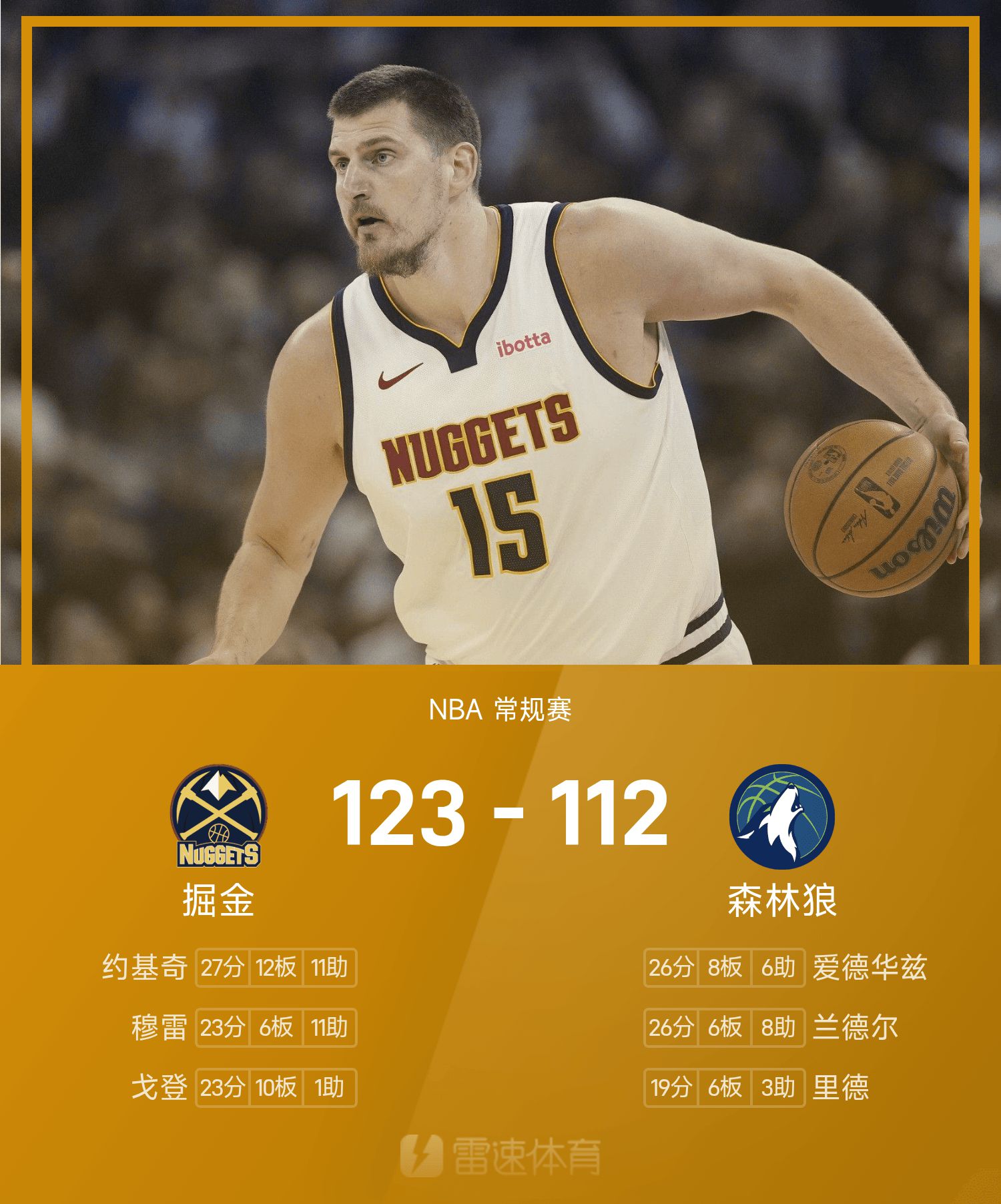 Jokic ghi 27 điểm trong một cú triple-double để đưa Nuggets giành chiến thắng dễ dàng trước Timberwolves.