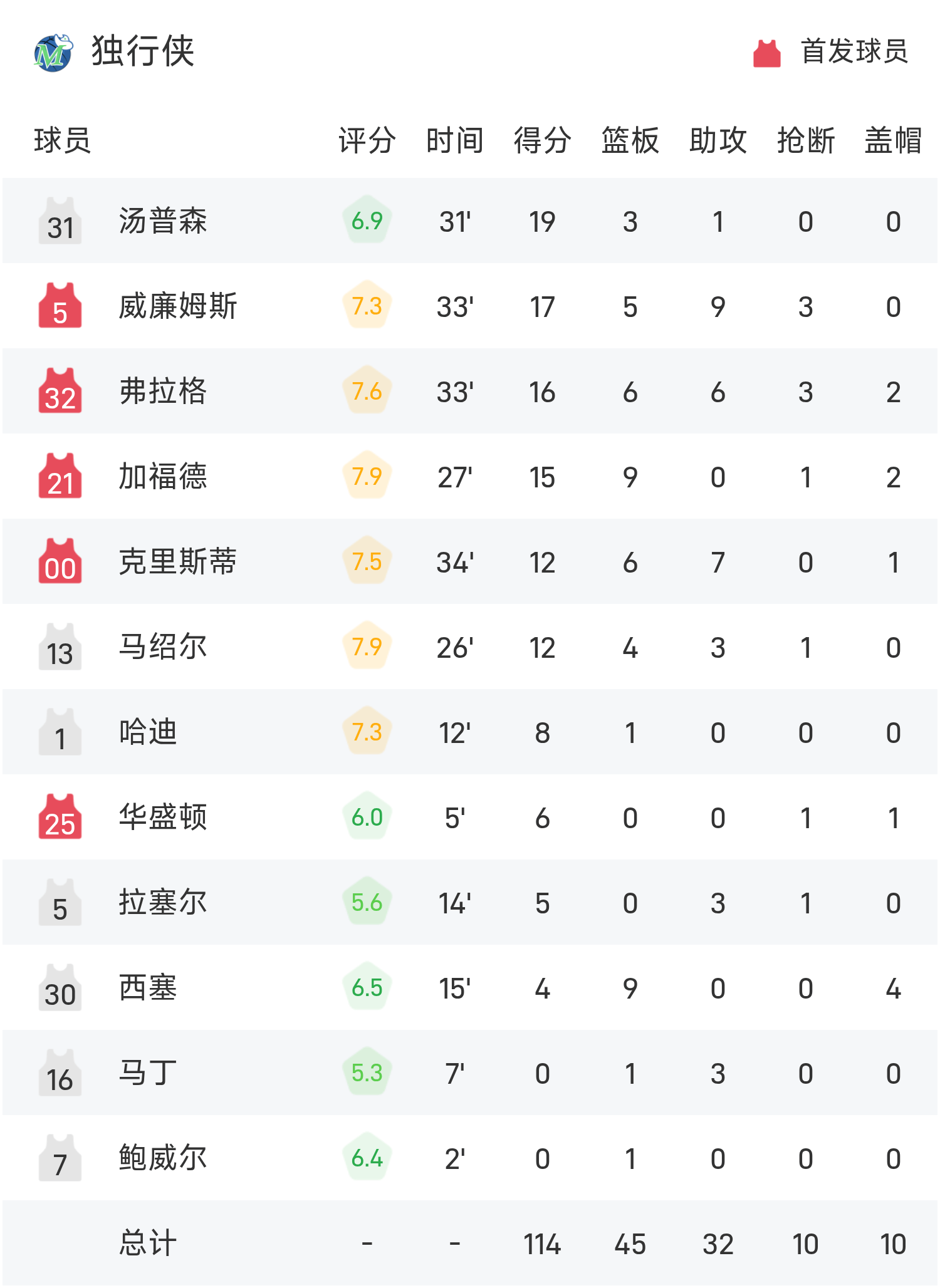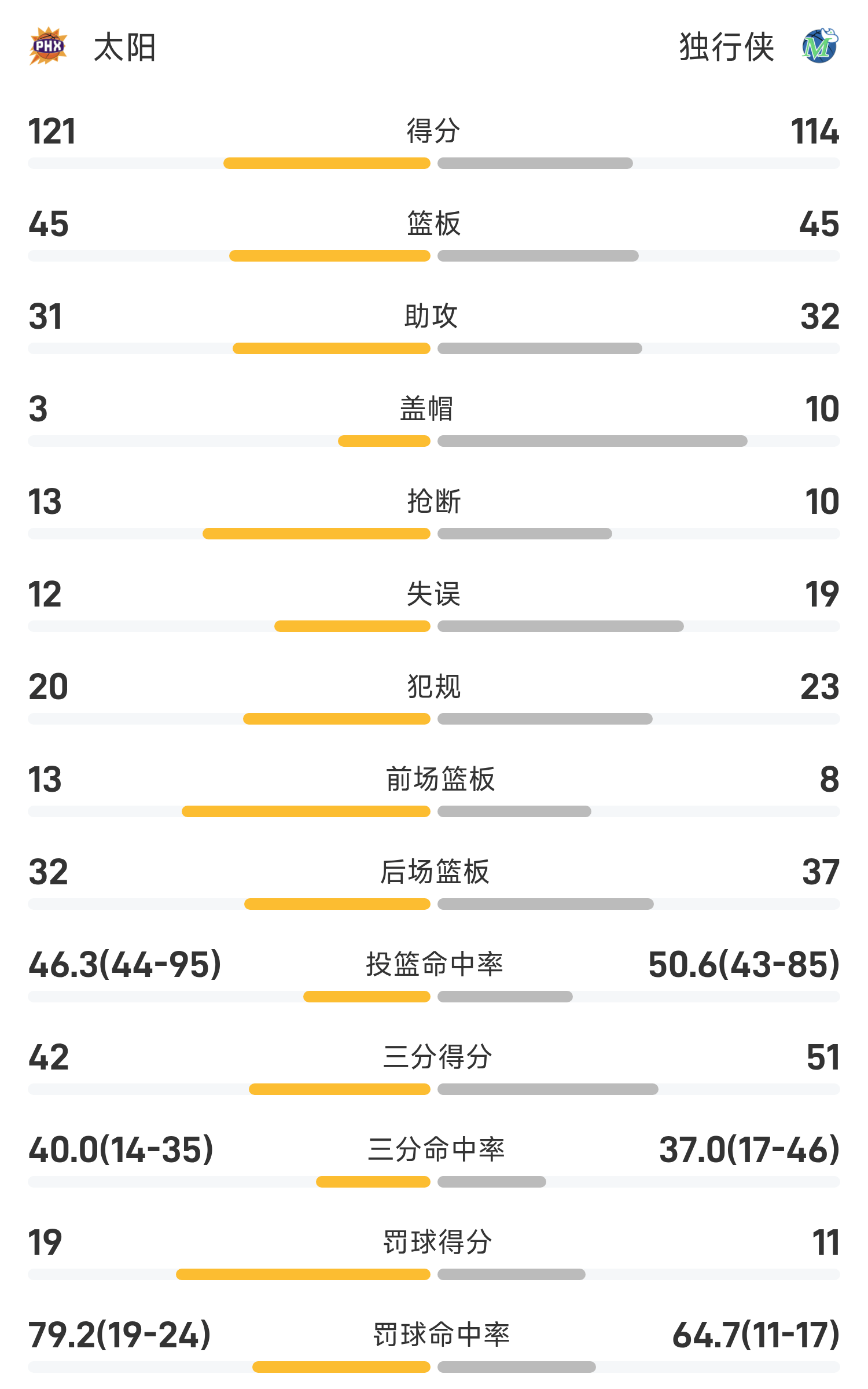 Cuối trận, Mavericks thua Suns với tỷ số 114-122.