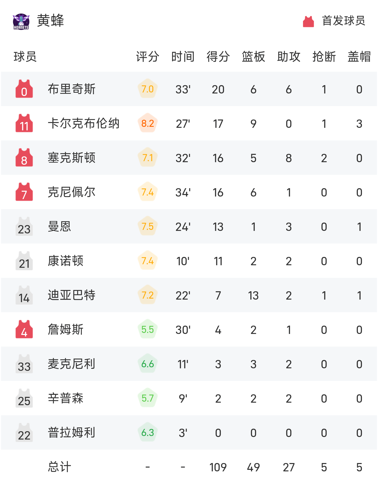 Bridges ghi được 20 điểm, 6 rebound và 6 kiến tạo để dẫn dắt đội đến chiến thắng. Rollins ghi được 25 điểm cao nhất trận, 5 rebound và 6 kiến tạo.