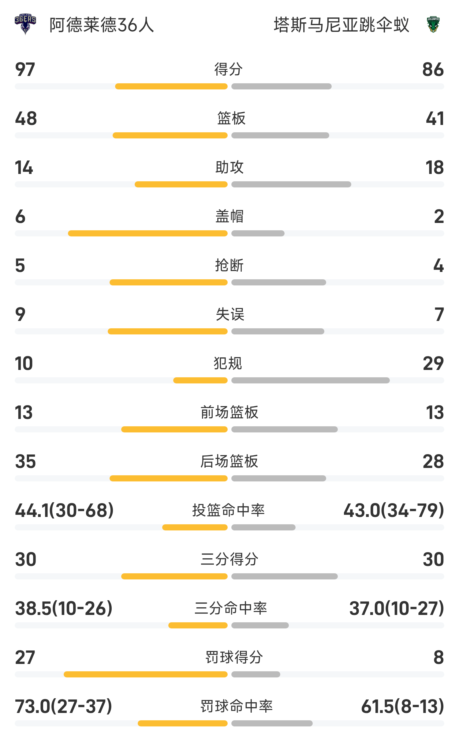 Cuối trận, Tasmanian Skydiving Ants thua Adelaide 36ers với tỷ số 86-97.