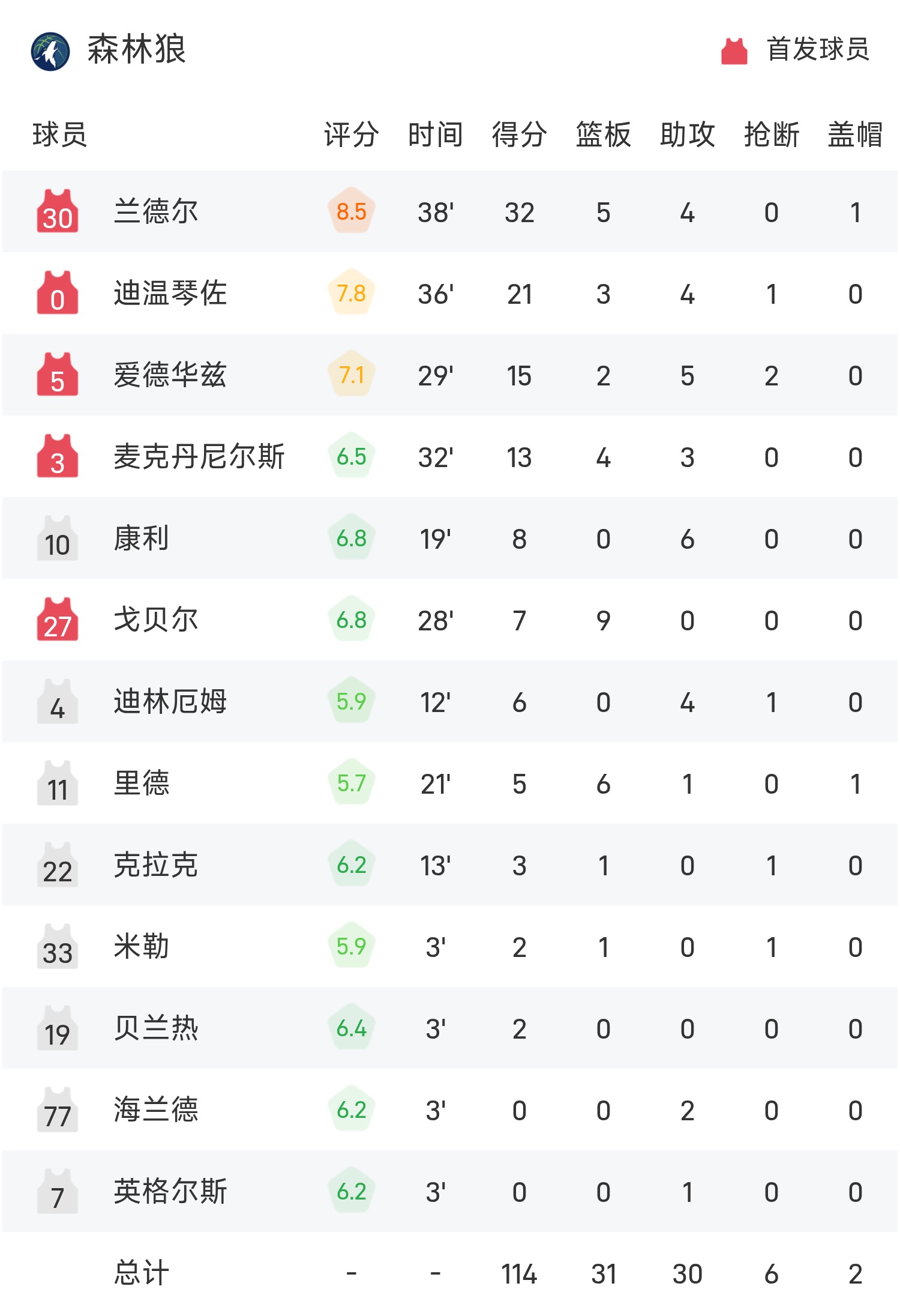 Anunoby ghi được 25 điểm và 8 rebound, dẫn dắt đội giành chiến thắng với 23 điểm, 7 rebound và 10 kiến tạo. Randall đã ghi được 32 điểm cao nhất trận đấu, 5 rebound và 4 kiến tạo.