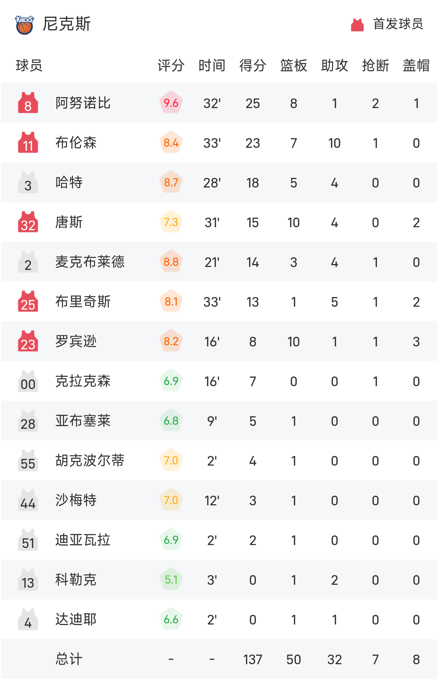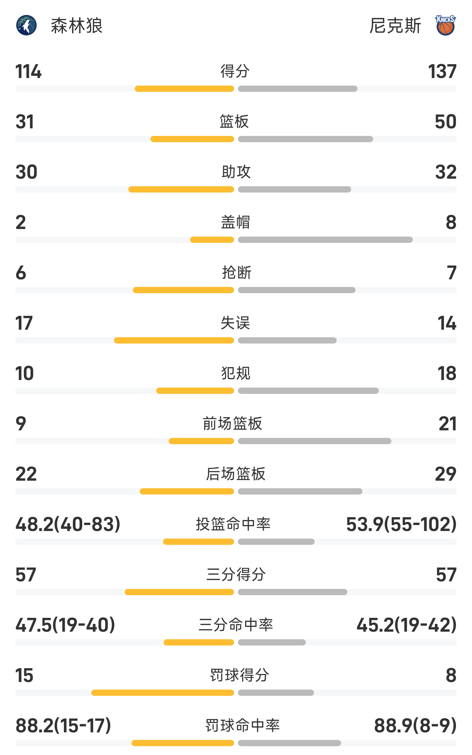 Cuối trận, Knicks đánh bại Timberwolves với tỷ số 137-114.
