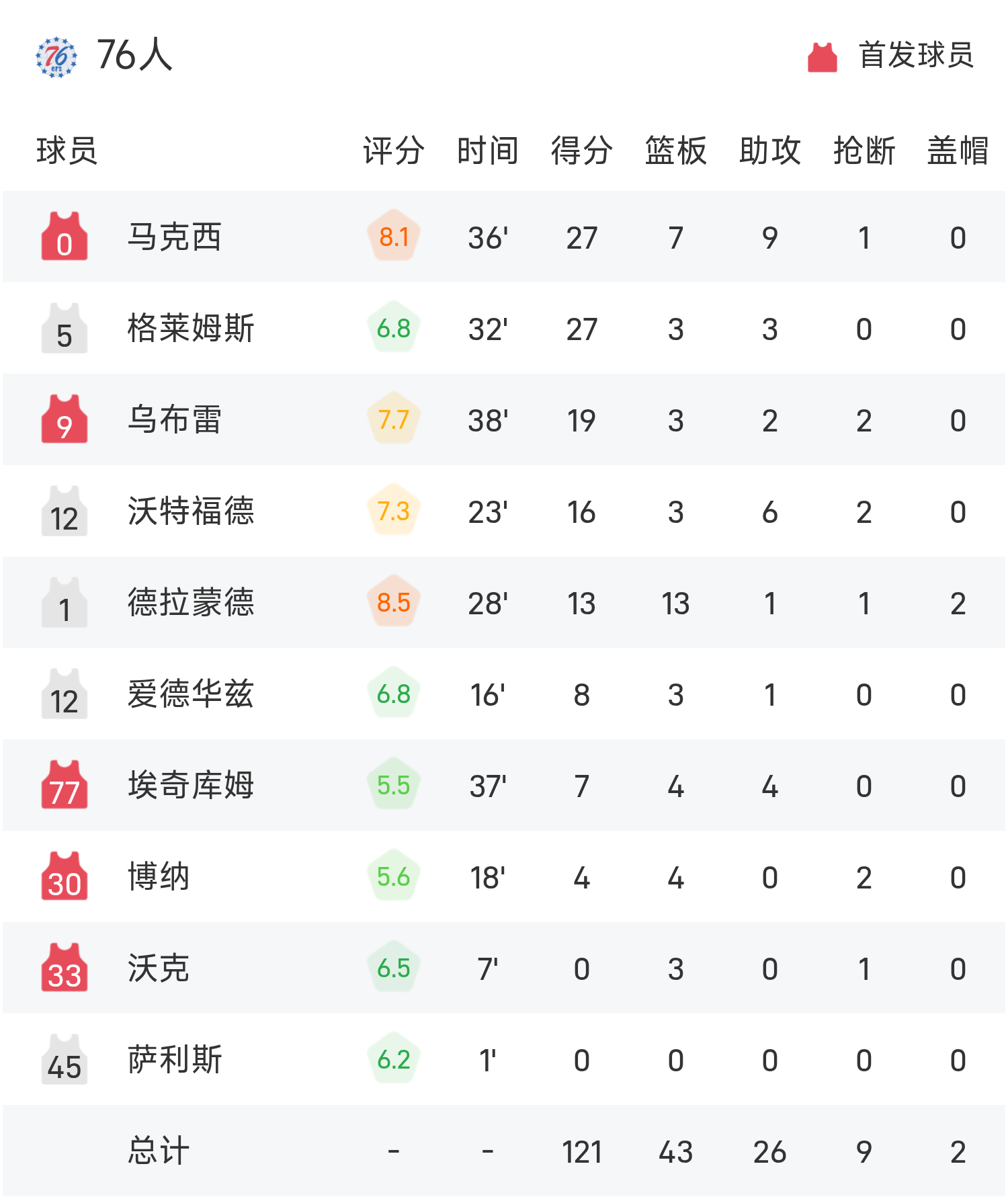 Sau khi hai bên giao chiến, Cavaliers đã đánh bại 76ers với tỷ số 132-121.